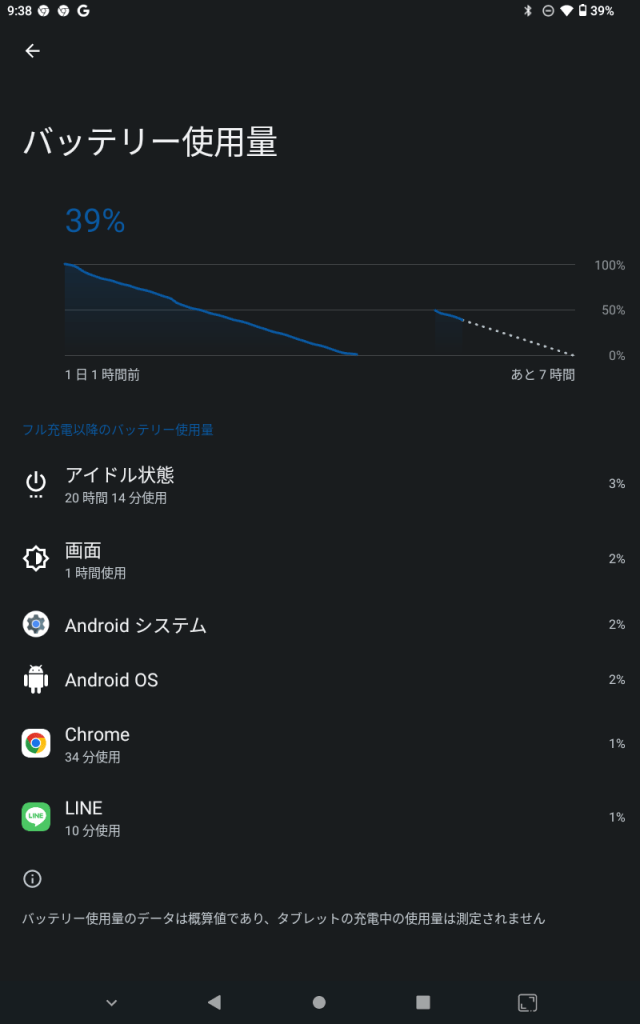 使ってようが待機してようがほぼ同じようにどんどん減り、放っておけば勝手に数時間で0になる。