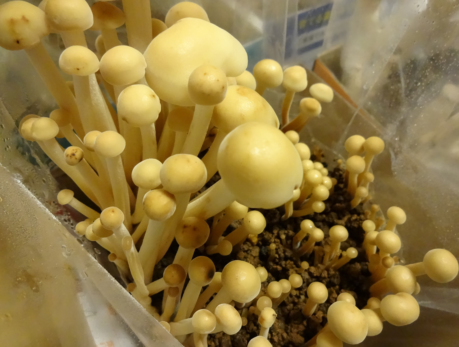 最後はきっちりキノコを食せるし、市販の出荷されているものと違って好きなタイミングで収穫できるから、なめこみてえなえらくでかいエノキタケを作ったりした。