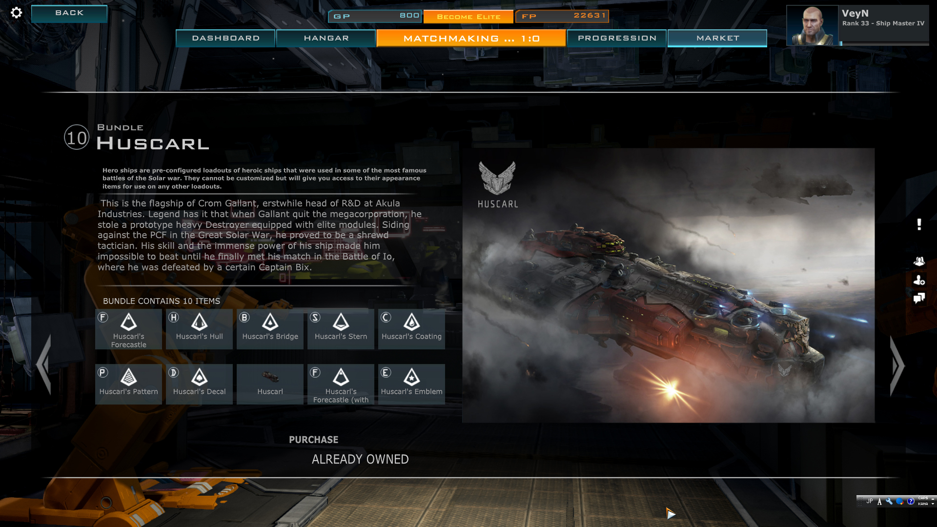 主兵装のPlasmaCannonsが近~中距離で使いやすい火力を提供するが射程が5000程度と短い。Dreadnoughtの中では機動性があるが、それでもHeavyDestroyerに及ばないレベルであり、ヘルスも4万台と低いため接近戦向けの主兵装を持つが慎重な運用を必要とする。低Rankから使用される艦であるため1番モジュールは同じく低Rankから決定力をもつNukeを積んでいることが多いが、近接戦に向いた艦自体の性格とのシナジーは、あまりない。要するに選択肢の少ない序盤にシナジーなど考えずに単純に強い兵装を積んで出撃する艦といった趣である。