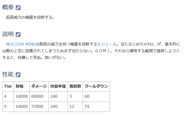 これは以前から度々言ってきてることなんだけども、無味乾燥なデータベースとしてのwikiは価値がある反面、個人の主観で左右される部分、つまり説明みたいなものの大半は見る価値がない。これは多くのゲームのwikiでそうだ。WIKIの記事は誰でも書けるのがメリットであり、誰でも書けるからこそ、主観に左右される内容の信頼性は薄い。編集者が信頼できる人間なのかどうなのか判断ができない。というか、無記名である以上は判断するための材料すらそこにはない。反面、ただのデータ、たとえば性能の数字なんかには主観が入りようがないから役に立つ。
