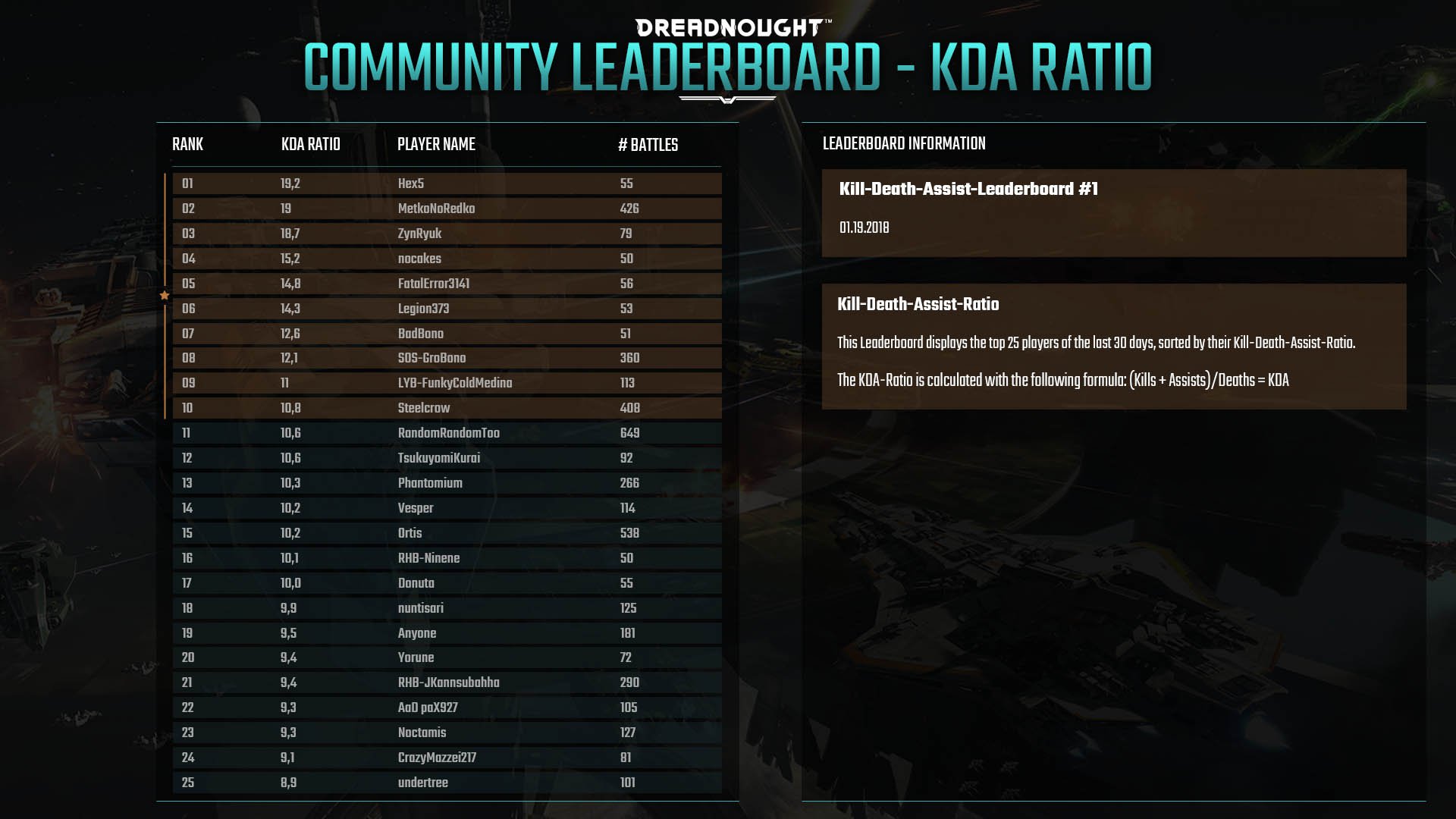 極端な話、KDAだけに関していえば、3K0Dなんてしょぼいスコアでもこれを堅実に繰り返していれば無際限に高まっていくわけで、逆に勝利のためにリスクを冒すプレイヤはこのランクには掲載されにくいってとこを押さえておく必要がある。