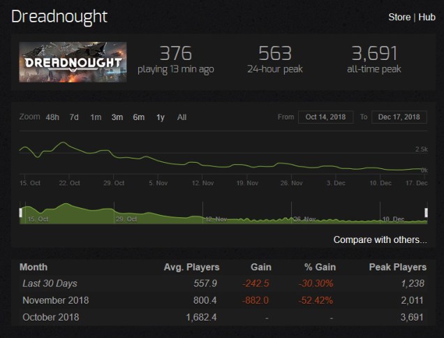 Steam化を果たした後、アップデートが変なのばっかだよなみたいな話をした後、Dreadnoughtの人口が具体的にどんなかんじなんだって数字をみた。